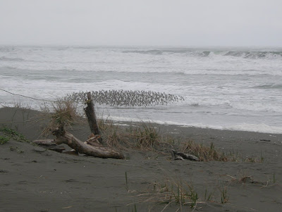 The photos below show the flock in flight over the waves. Click on the photos for better detail.
